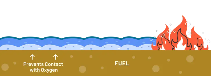 The foam layer seals the fuel source and blocks oxygen, effectively halting the combustion process.